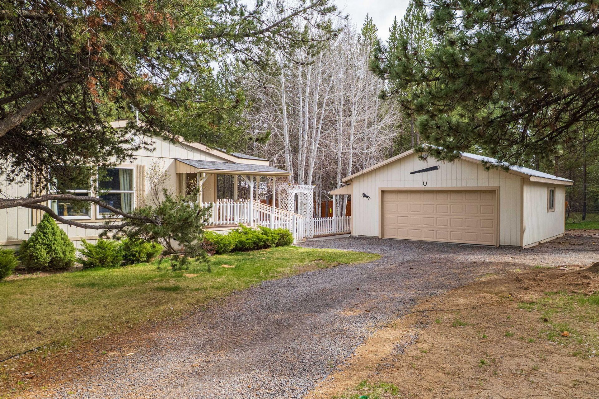 Charming 2-bedroom, 2-bath home offering comfort, space, and functionality. Featuring new laminate flooring and a newer wood stove, this home provides a warm and inviting atmosphere. The kitchen shines with a lovely dining area, perfect for everyday living or entertaining. The spacious primary suite includes dual sinks, a soaking tub, and a walk-in shower. Enjoy abundant storage throughout, plus a detached 2-car garage, carport, and two additional storage buildings. The fully fenced and cross-fenced property offers a semicircle driveway, garden area, and a backyard full of potential to make your own. Ride directly out the back gate for outdoor adventures. Conveniently located minutes from La Pine and Gilchrist with easy access to Hwy 97.